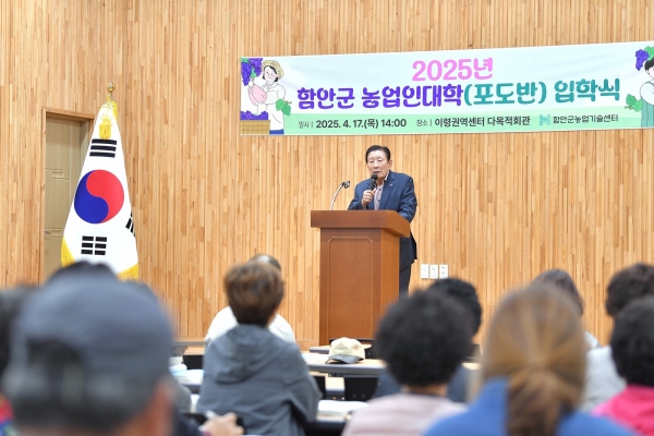 [아시아월드뉴스] 함안군은 17일 칠북면 이령권역센터 다목적회관 회의실에서 함안군농업인대학 입학생과 관계자 등 60여명이 참석한 가운데 ‘2025년도 제20기 함안군농업인대학’ 입학식을 개최했다.