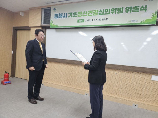 [아시아월드뉴스] 김해시는 지난 17일 김해시보건소에서 2025년 기초정신건강심의위원회 위촉식을 개최해 10명에게 위촉장을 수여했다고 18일 밝혔다.