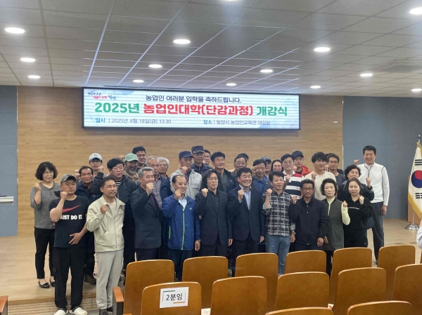 [아시아월드뉴스] 밀양시는 18일 농업교육관 대강당에서 입학생과 관계자 등 50여명이 참석한 가운데 2025년 농업인대학 입학식을 개최했다고 밝혔다.