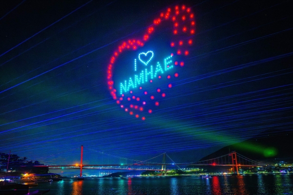 300대의 드론이 남해의 봄과 사람, 고향의 정서를 형상화하며 밤하늘을 아름답게 수놓았고 2728개의 남해대교 경관조명과 조화를 이루며 황홀한 빛의 무대를 선사했다.