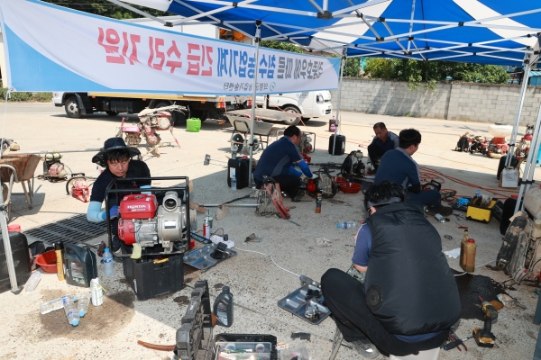 의령군농업기술센터 농기계지원팀은 긴급 수리 요원을 충원해 동력분무기, 관리기, 양수기, 경운기 등 작동이 멈춘 농기계를 점검하고 수리했다.