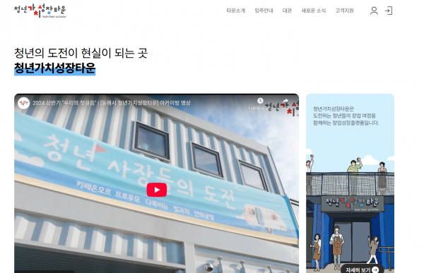 [아시아월드뉴스] 동해시는 청년들의 창업 도전을 지원하기 위해 ‘청년가치성장타 운’을 23년 12월에 조성했으며 8월 14일부터는 청년가치성장타 운 홈페이지를 새롭게 개설했다.