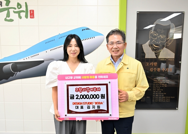 [아시아월드뉴스] 군위군은 디자인 ‘보다'의 김지원 대표가 21일 군청을 방문해 고향사랑기부금 200만원을 기탁했다고 밝혔다.