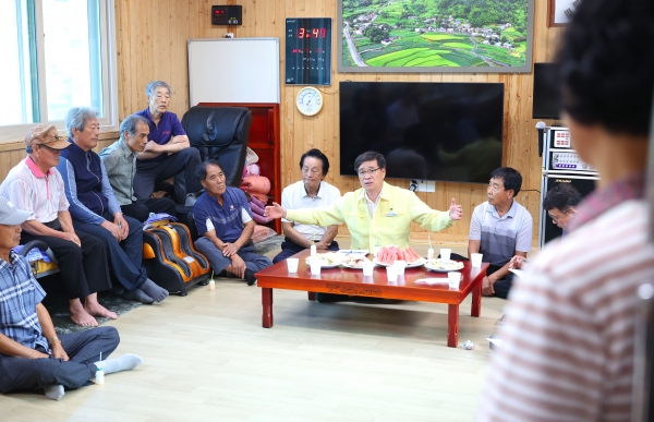 진 군수는 이번 간담회에서 폭염 속 무더위 쉼터를 직접 점검하고 특별재난지역 선포에 따른 지원 대책을 설명하는 등 주민들과 더욱 가까운 곳에서 생활 속 불편 사항을 꼼꼼히 살폈다.