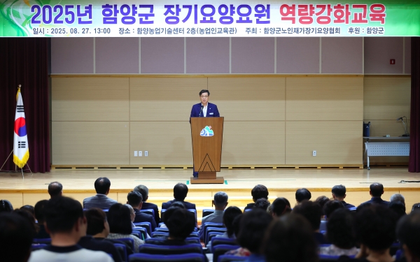 진병영 함양군수는 “노인 인구가 급속히 증가하는 시대에 돌봄 현장의 최일선에서 묵묵히 헌신하고 계신 장기요양기관 종사자 여러분께 깊은 감사를 드린다”며 “오늘 교육을 통해 장기요양요원으로서 자부심을 느끼고 함양군의 노인복지 증진에 함께 힘써달라”고 말했다.