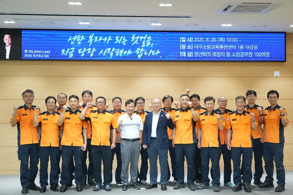[아시아월드뉴스] 대구소방안전본부는 8월 28일 오전 10시 대구소방교육훈련센터 1층 대강당에서 금융전문가 존리 대표를 초청해 ‘선한 부자가 되는 첫 걸음, 지금 당장 시작해야 한다’라는 주제로 특별강연을 개최했다.