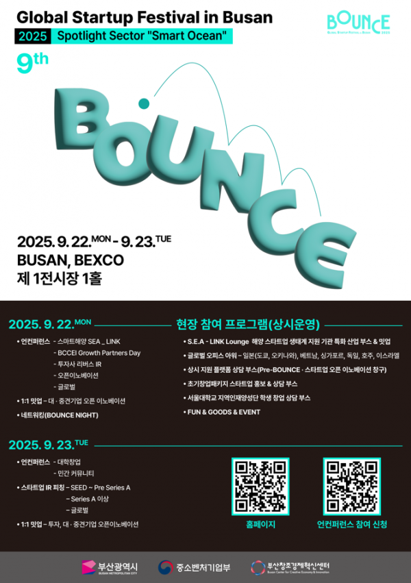 [아시아월드뉴스] 부산시는 오는 9월 22일 23일 양일간 벡스코에서 지역 창업생태계를 연결하는 부산 대표 세계적 창업 행사인 ‘바운스 2025’를 개최한다고 밝혔다.