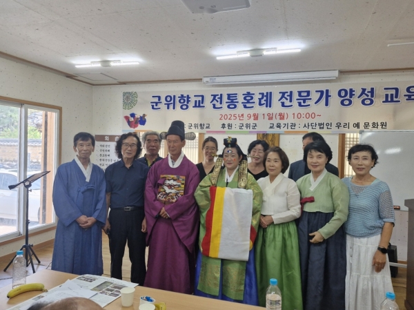 [아시아월드뉴스] 군위향교는 지난 9월 1일 오전 10시 군위향교 함덕당에서 20여명의 각 지부 회원이 참석한 가운데 우리 예 문화원에서 주관하는 전통혼례 전문가 양성교육을 실시했다.