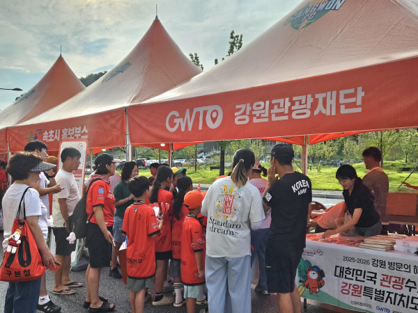 [아시아월드뉴스] 강원관광재단은 지난 8월 31일 강릉 종합운동장에서 열린 강원 FC와 포항 FC의 K리그1 경기에서 ‘2025-2026 강원 방문의 해’ 홍보 부스를 성공적으로 운영했다고 밝혔다.