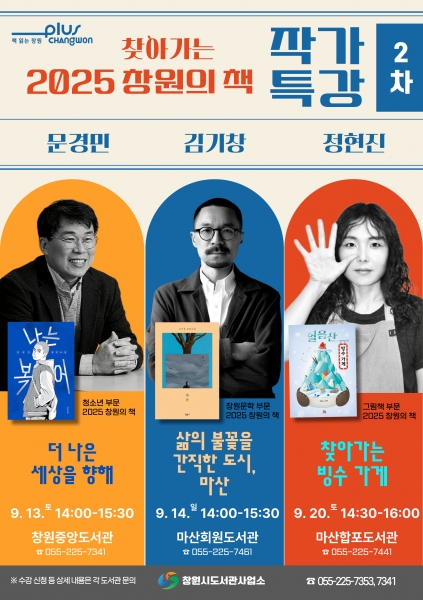9월 독서의 달을 맞아 ‘2025 창원의 책’ 으로 선정된 작가들이 창원시 공공도서관에서 시민들을 만날 예정이다.