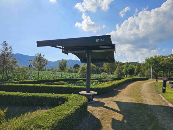 [아시아월드뉴스] 상주시는 지난 8월, 남산물길쉼터와 중덕지 자연생태공원에 스마트 그늘막을 설치했다.