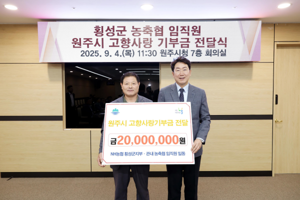 앞서 지난 6월에는 NH농협 원주시지부와 원주시 지역 농축협이 횡성군에 고향사랑기부금 3천600만원을 전달한 바 있다.