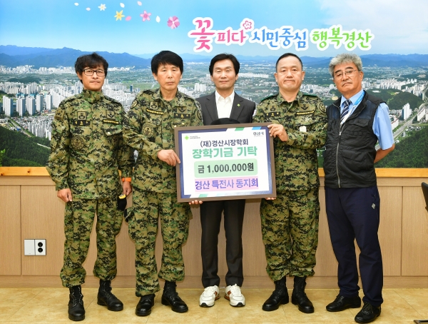 [아시아월드뉴스] 경산시장학회는 9일 경산 특전사 동지회 가 지역인재 육성을 위한 장학금 100만원을 기탁했다고 밝혔다.