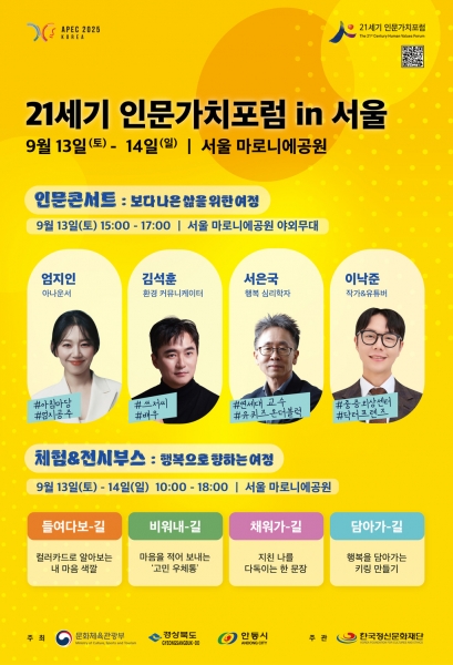 문화체육관광부, 경상북도, 안동시가 공동 주최하고 한국정신문화재단이 주관하는 ‘제12회 21세기 인문가치포럼’ 사전포럼이 오는 9월 13일부터 14일까지 이틀간 서울 마로니에공원에서 열린다.