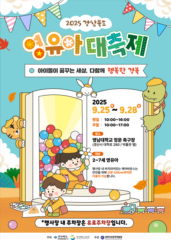 [아시아월드뉴스] 경북도와 경북도교육청은 저출생 극복과 아이 우선 문화 정착을 위한 ‘2025 경상북도 영유아 대축제’를 이달 25일부터 28일까지 4일간 영남대학교 경산캠퍼스에서 공동 개최한다.