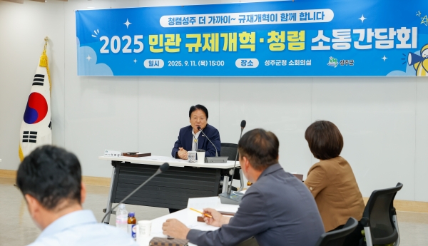 [아시아월드뉴스] 성주군은 지난 11일 관내 6개 경제 관련 협의회 회장단과 “2025 민-관 규제개혁·청렴 소통간담회”를 개최해 규제개혁을 위한 현장의 목소리를 들었다.