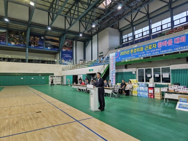 [아시아월드뉴스] 사천시는 지난 13일 환경미화 근로자, 가족 등 200여명이 참여한 가운데 “2025년 환경미화 근로자 한마음 대회”행사를 삼천포체육관에서 개최했다고 15일 밝혔다.