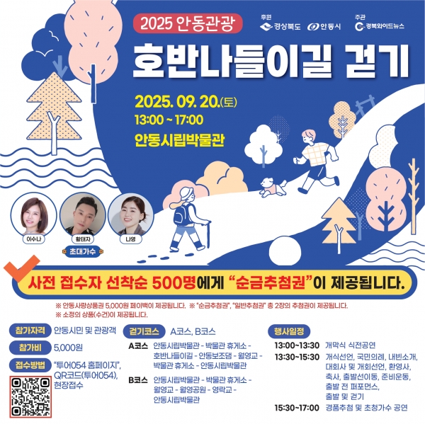 참가자 전원에게는 행사 현장에서 안동사랑상품권 5,000원이 전액 환급되며 당일 현장 접수도 가능하다.
