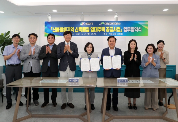 [아시아월드뉴스] 안동시와 한국토지주택공사는 산불피해 이재민의 주거 안정을 위해 ‘산불피해지역 신축매입 공급사업’에 대한 업무협약을 9월 15일 체결했다.