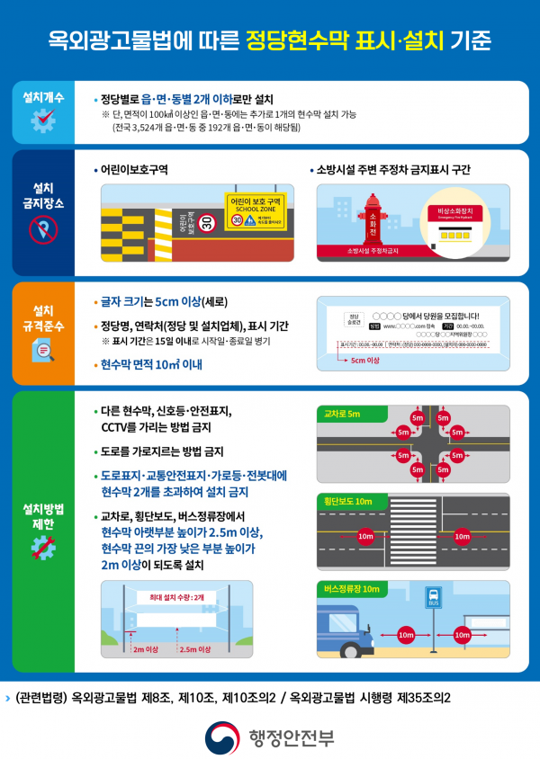 위반 현수막이 확인되면 자진 철거, 이동 설치 등의 시정 요구를 하고 요구 미이행 시 지방자치단체에서 철거한다는 방침이다.
