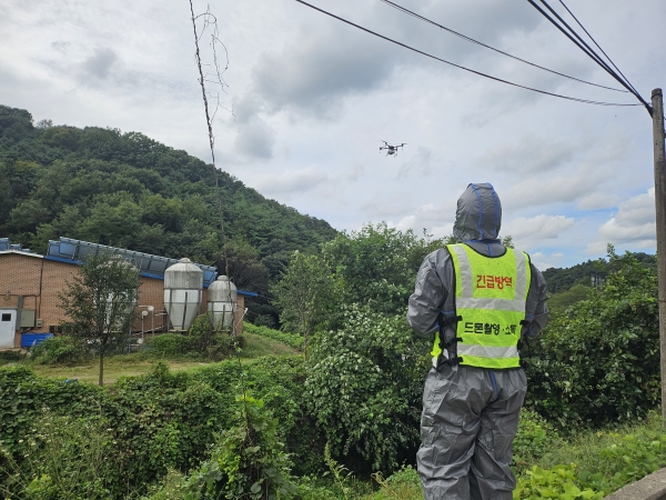 또한, 지난 22일에는 경북 경계지역 양돈농가 중심으로 가축방역위생방역지원 본부와 협력해 드론을 활용한 야생동물 기피제 살포를 실시했다으로써 방역 사각지대 해소에 힘쓰고 있다.