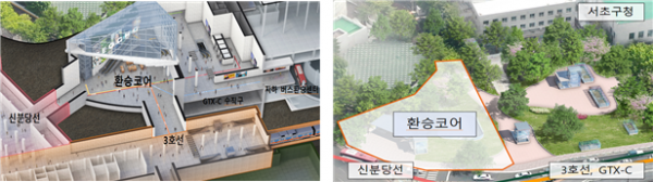 양재역 환승코어는 GTX-C, 3호선, 신분당선 간 이동 거리를 줄이기 위해 지하에서 한번에 연결하는 환승광장으로 이번 용역을 통해 설계를 진행해 GTX-C와 함께 준공될 예정이다.