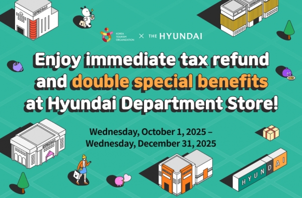 [아시아월드뉴스] 한국관광공사는 부가세 즉시환급 서비스 활성화 등 외국인 관광객의 쇼핑 편의를 개선하고자 현대백화점과 함께 10월 1일부터 12월 31일까지 공동 프로모션을 진행한다.