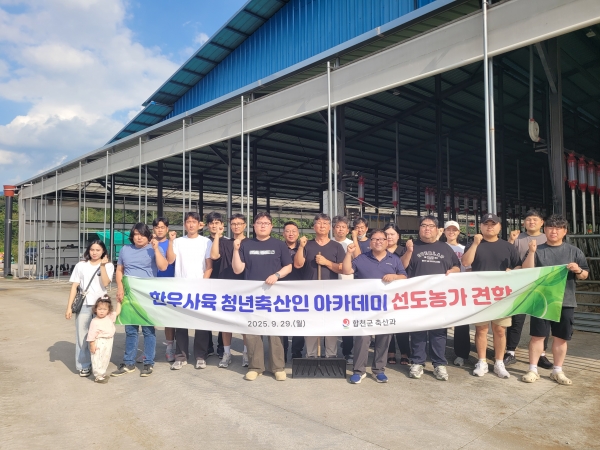 [아시아월드뉴스] 합천군은 29일 ‘한우사육 청년축산인 아카데미’의 일환으로 한우사육 청년축산인 20여명이 참여한 가운데 관외 선도농가 견학을 실시했다.
