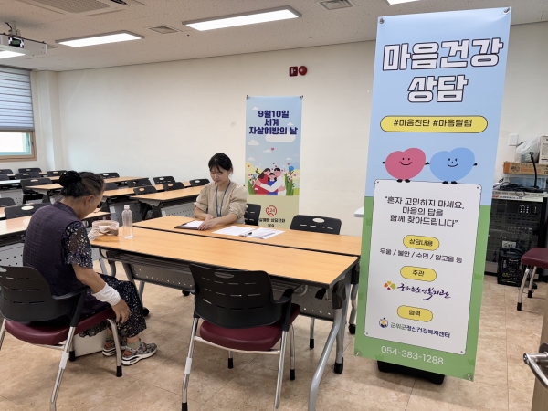 또한 △8일 군위재래시장 △10일 군위군청 △11일 군위노인복지관 △12일 군위역 △22일 부계중학교·군위재가노인돌봄센터 △24일 효령중학교 △30일 의흥전통시장 등에서 심리검진, 자살예방 OX퀴즈, 가두캠페인 등을 진행했다.