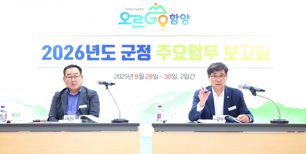 [아시아월드뉴스] 함양군은 9월 29일부터 30일까지 2일간 군청 소회의실에서 ‘2026년도 군정 주요 업무 보고회’를 개최했다.
