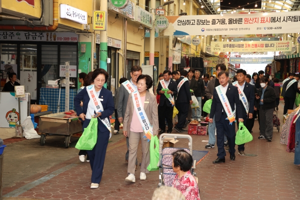 [아시아월드뉴스] 상주시의회는 2일 전통시장의 지역경제 활성화를 위해 중앙시장과 풍물시장 일원에서 전통시장 장보기 행사를 실시했다.