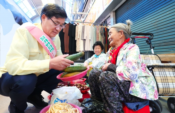 또한 장을 보러 나온 군민들과 일일이 인사를 나누며 전통시장 이용을 독려하고 추석 인사를 전했다.
