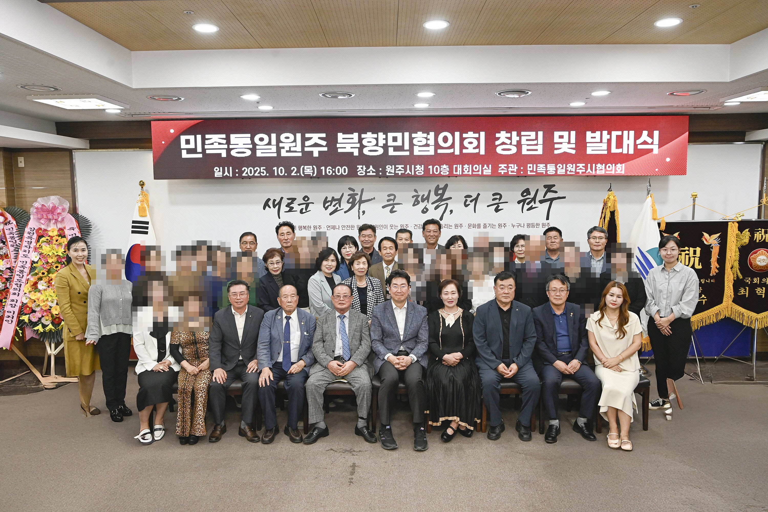 [아시아월드뉴스] 민족통일원주시협의회(회장 방종준)는 지난 2일 원주시청 10층 대회의실에서 ‘민족통일원주 북향민협의회’ 창립 발대식을 개최했다.