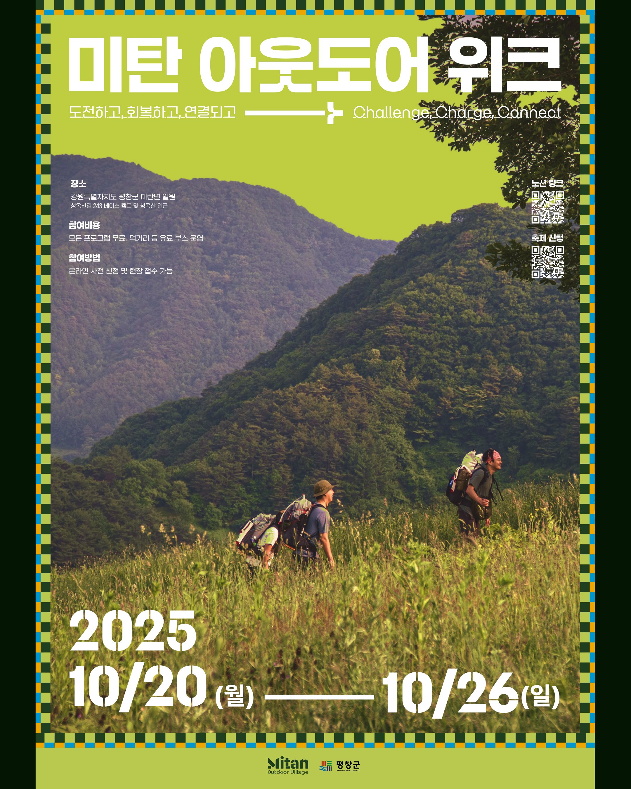 이번 행사는 2025년 행정안전부‘생활권 단위 로컬 브랜딩 활성화 사업’ 공모에 선정된 ‘미탄 아웃도어 빌리지-로드트립 & 트레킹 거점마을’ 사업의 하나로 ‘도전하고 회복하고 연결되고 →Challenge, Charge, Connect’라는 주제 아래 진행된다.