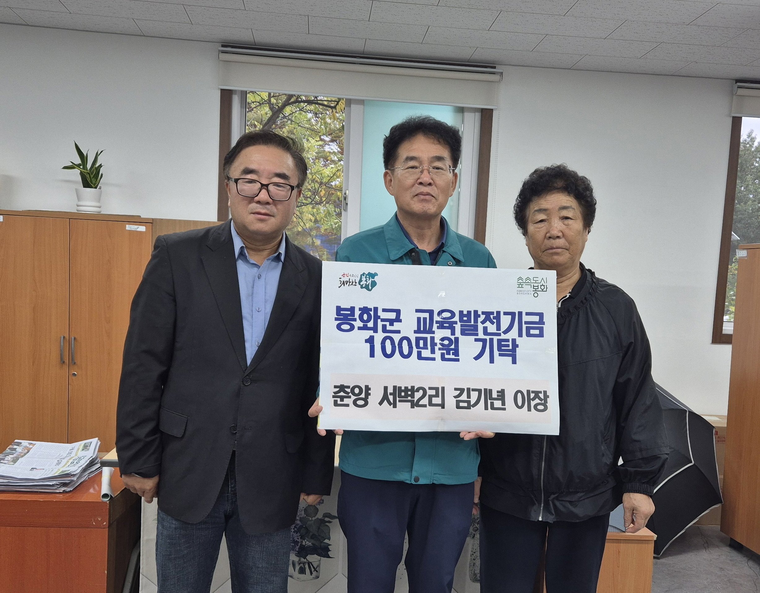 [아시아월드뉴스] 춘양면 서벽2리 김기년 이장은 지역 인재 육성과 교육환경 개선을 위한 뜻을 모아 지난 13일 봉화군 교육발전기금으로 100만원을 기탁했다.