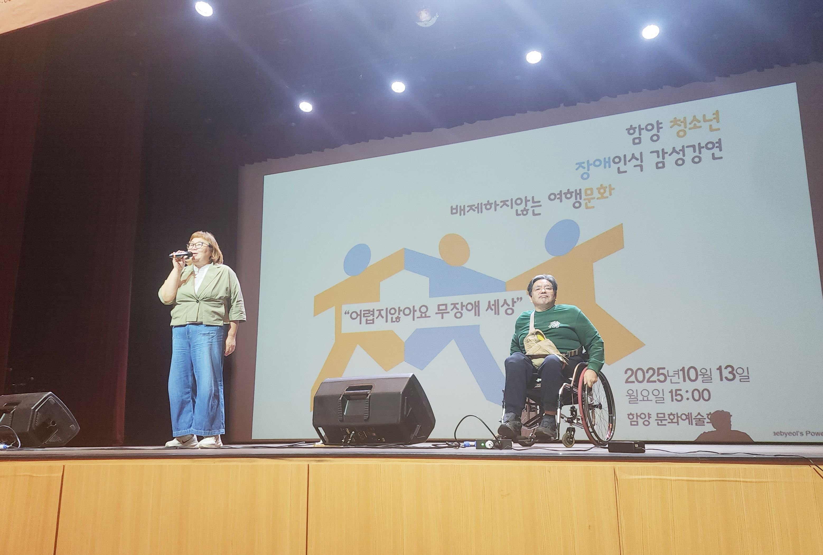 [아시아월드뉴스] 함양군 사회복지협의회(회장 오연교)는 13일 함양예술문화회관 대공연장에서 ‘2025 함양 청소년 장애인식 감성강연’을 진행했다.