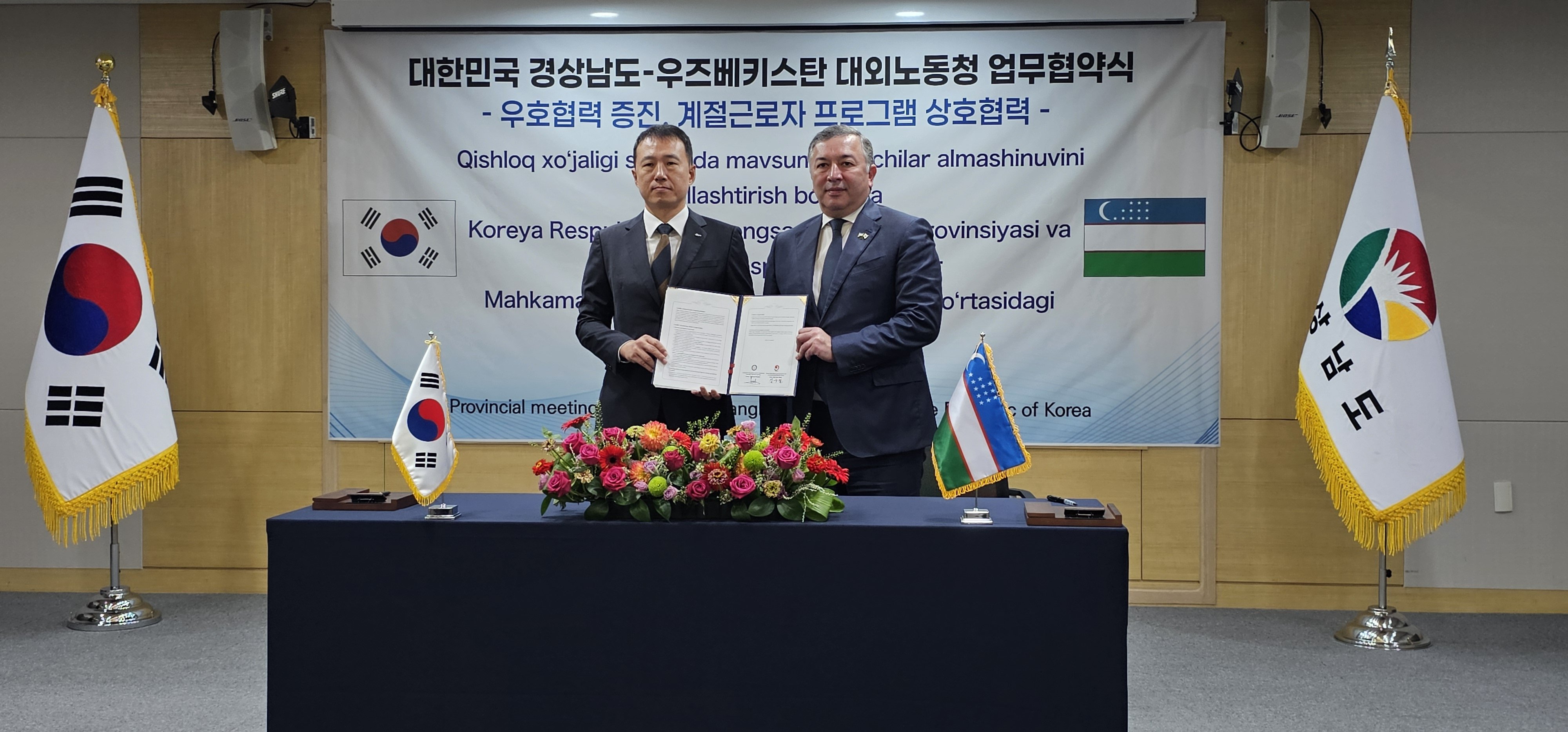 [아시아월드뉴스] 합천군(군수 김윤철)은 10월14일 경남도청 도정회의실에서 우즈베키스탄 대외노동청과 외국인 계절근로자 도입을 위한 업무협약(MOU)을 체결했다.