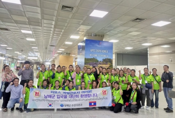 [아시아월드뉴스] 남해군은 법무부 주관 ‘2025년 하반기 외국인 계절근로자 프로그램’ 으로 배정된 ‘라오스 외국인 여성 계절근로자’ 34명이 지난 16일 김해공항을 통해 입국했다고 밝혔다.