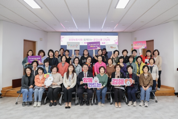 [아시아월드뉴스] 김해시는 지난 20일 오후 5시 김해지역자활센터 4층 강당에서 ‘요양보호사와 함께하는 공감소통 간담회’를 개최했다고 21일 밝혔다.