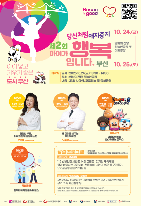[아시아월드뉴스] 부산시는 내일과 25일 양일간 영화의전당 하늘연극장 및 야외광장에서 저출생 대응 캠페인 당신처럼 애지중지 '제2회 아이가 행복이다.