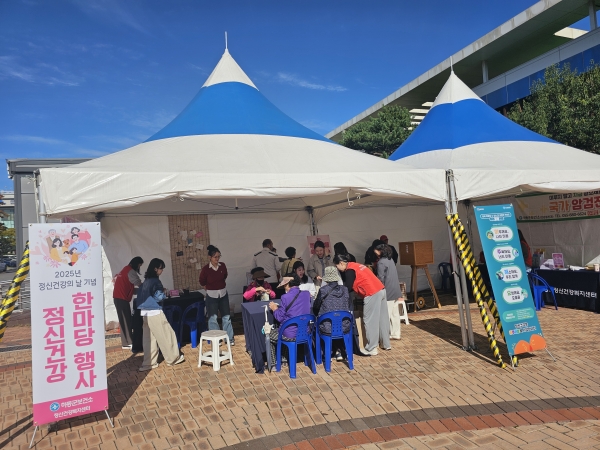 [아시아월드뉴스] 하동군 정신건강복지센터가 하동군보건소 앞 광장에서 “2025년 정신건강 한마당 행사”를 진행 중이다.