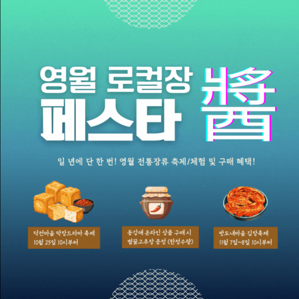 박수연 농식품유통사업단장은 “이번 축제는 주민이 직접 준비한 체험과 먹거리로 꾸며진 만큼, 방문객들이 영월의 따듯한 정을 느끼며 함께 어우러지는 시간이 되길 바란다”며 “많은 분이 찾아오셔서 영월만의 장맛과 문화를 즐겨주시길 기대한다”고 말했다.