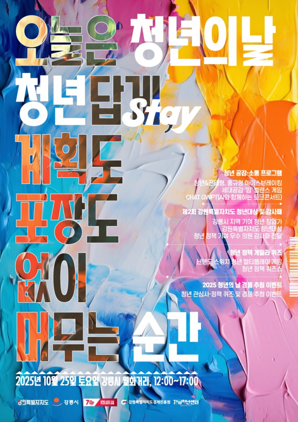 [아시아월드뉴스] 강원특별자치도는 10월 25일 오후 3시, 강릉 월화거리에서 도내 청년들의 열정과 도전을 응원하는 ‘2025 강원특별자치도 청년의 날 기념행사’를 개최한다.