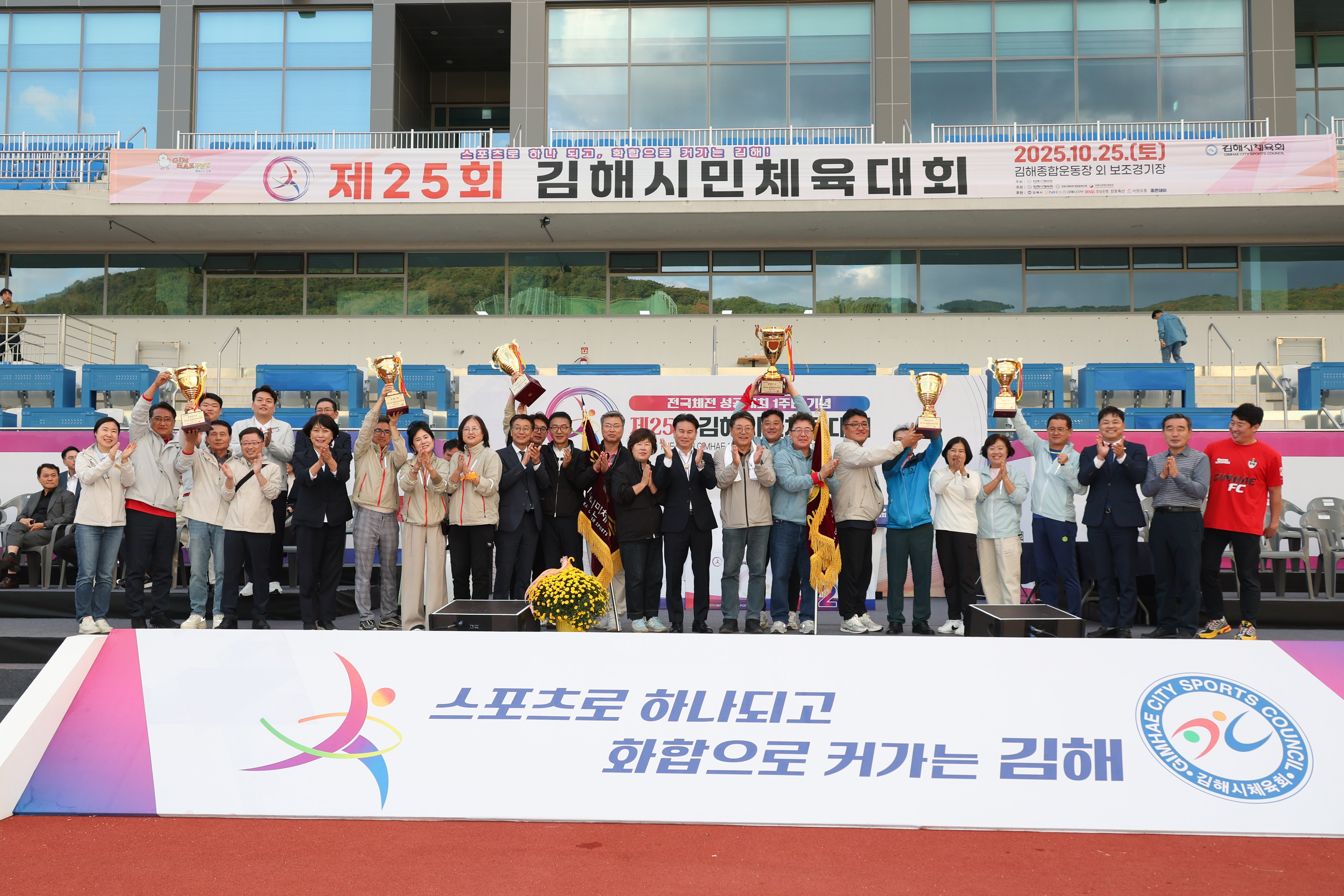 제25회 김해시민체육대회는 지난 25일 김해종합운동장과 지역 곳곳의 14개 보조경기장에서 19개 읍면동 선수단과 시민, 총 8,000여명의 참여 속에 성황리에 개최됐다.