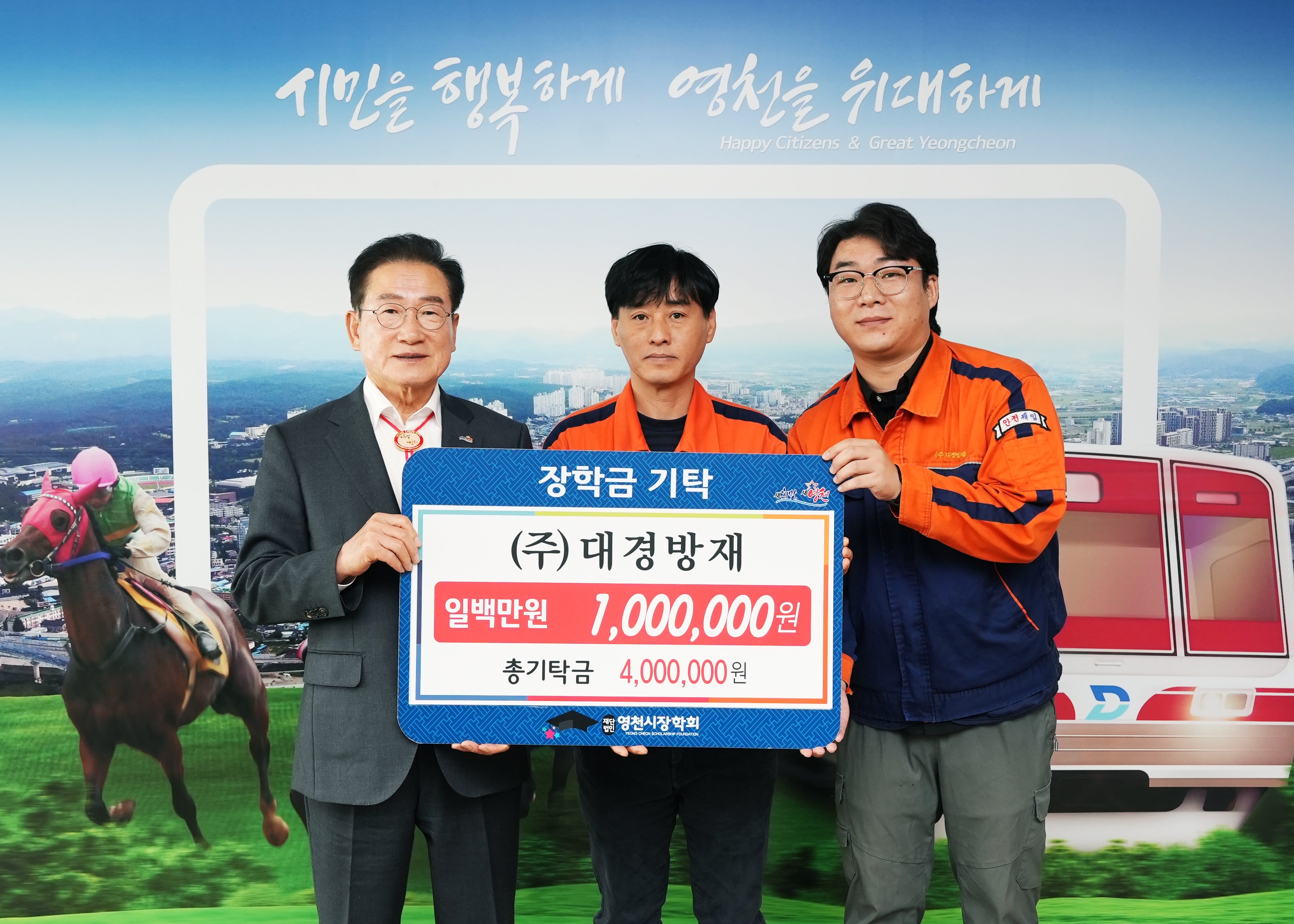지난 26일 금호초등학교 총동창회(회장 전치영)에서 100만원, 27일 ㈜제이원(대표 조용숙)과 ㈜대경방재(대표 김태영)에서 각각 200만원과 100만원의 장학금을 영천시장학회에 기탁했다.