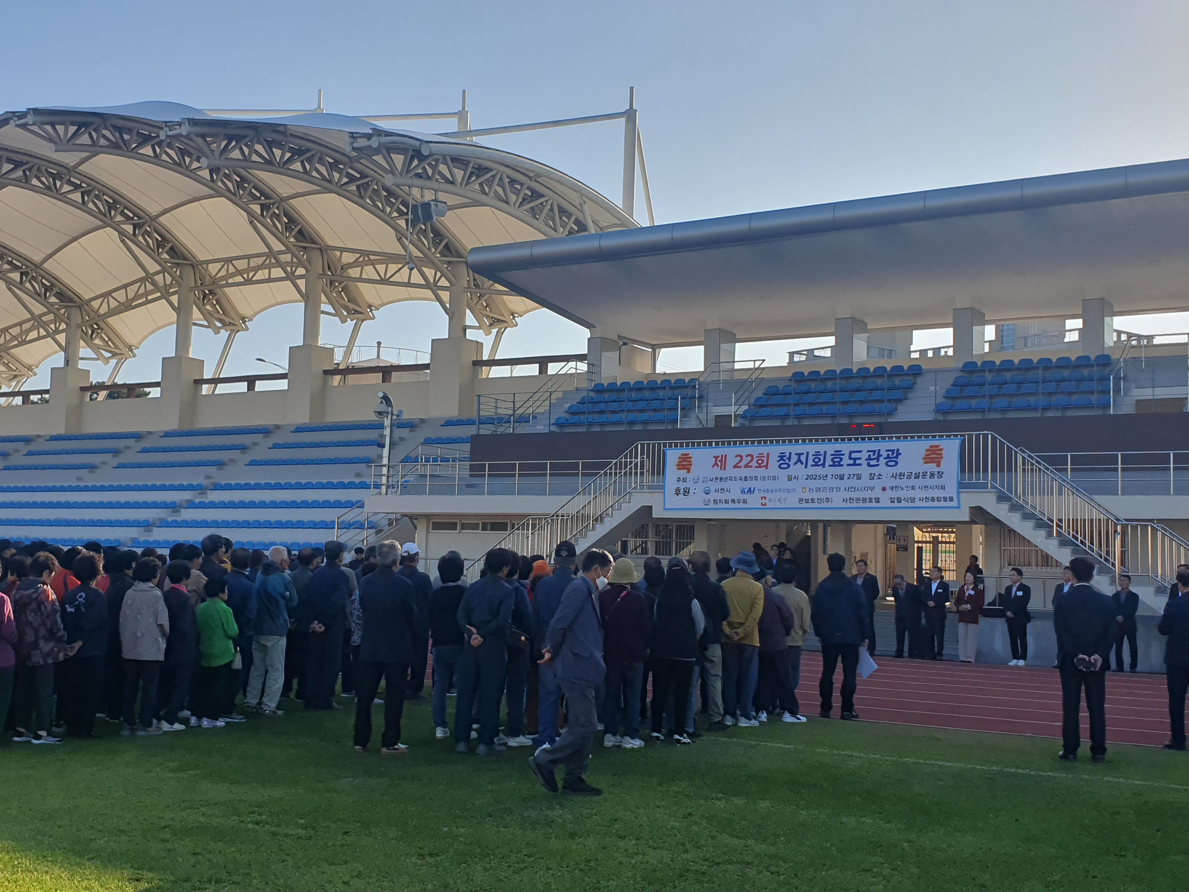 이날 박동식 시장을 비롯해 김규헌 시의회 의장, 안규탁 (사)대한노인회 사천시지회장, 사천시청년지도자협의회(이하 ‘사천시청지회’) 회원과 특우회원 그리고 어르신 등 240여명이 참석한 가운데 사천종합운동장에서 환송식을 가진 후 실시됐다.