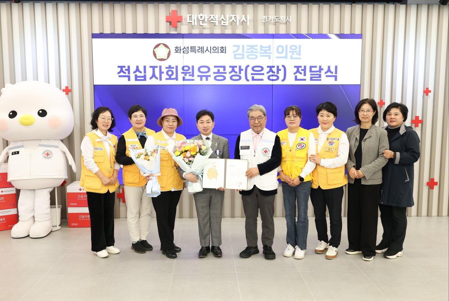 [아시아월드뉴스] 화성특례시의회 문화복지위원회 김종복 의원(동탄4·5·6동)이 28일 대한적십자사 경기도지사(회장 이재정) 남중부봉사관에서 ‘대한적십자사 회원유공장 은장’을 수상했다.