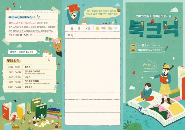 [아시아월드뉴스] 안동시립어린이도서관에서는 청량한 계절, 가을을 맞아 온 가족이 함께 어우러질 수 있는 책문화 축제로 ‘2025년 안동시립어린이도서관 북크닉’행사를 오는 11월 1일 11시부터 오후 5시까지 개최한다.