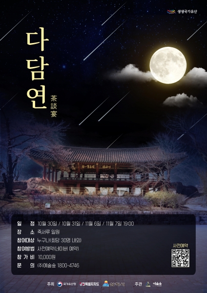 ‘다담연’은 국보 죽서루를 특별 야간 개방해 진행되는 행사로 전통 조명과 소품을 활용해 고즈넉하고 은은한 야경 분위기 속에서 차를 마시며 풍류를 즐기는 프로그램이다.