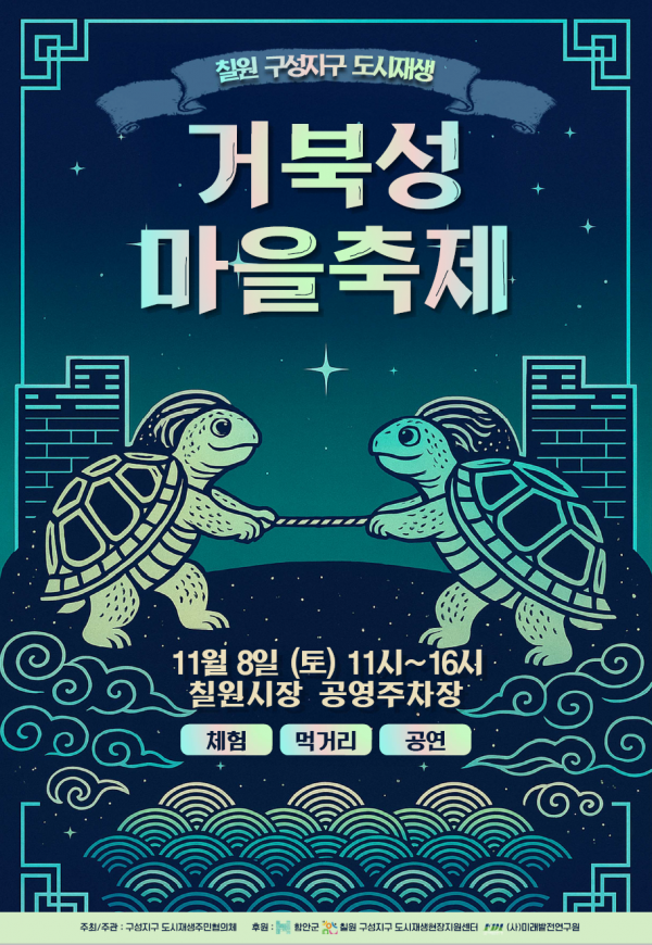 [아시아월드뉴스] 함안군은 ‘제2회 칠원 구성지구 도시재생 거북성 마을축제’ 가 11월 8일 오전 11시부터 오후 4시까지 칠원읍 구성리 칠원시장 공영주차장 일원에서 열린다고 밝혔다.